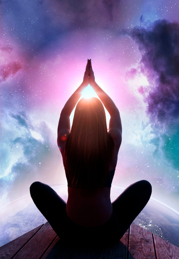 “Next, imagine white light pouring down from the sky, going through your head and filling your entire body. Follow the light as far as you can go, beyond the edges of Earth and the