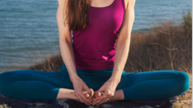 Sit comfortable with a straight spine and the legs extended in front of you. Bend the knees and place the soles of the feet together, close to the hips. Drop the knees down to the floor. Relax the shoulders and breathe deeply through the nose for 10 breaths.