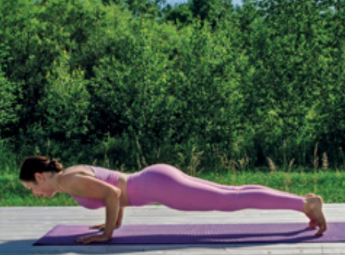 Release the Low Lunge Twist and place both palms down to step your feet back into Plank pose. Flow from Plank to Four-Limbed Staff pose to Upward-Facing Dog and back to Downward-Facing Dog.