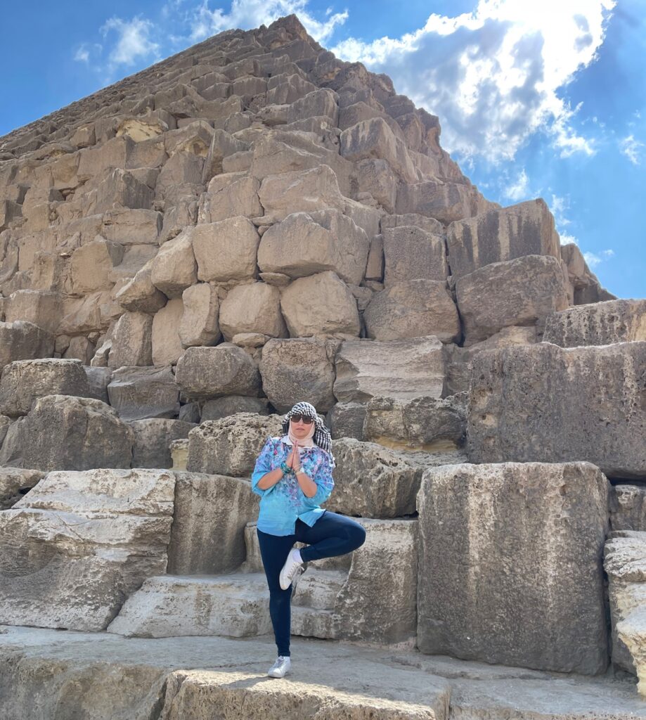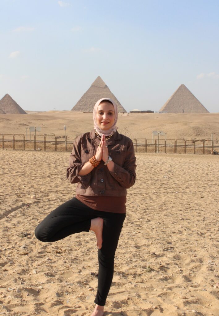 As I strike the Tree pose before the ancient pyramids of Giza, captured in a moment of serene balance, I am not just practising yoga; I am weaving a narrative that transcends boundaries. This narrative is one of spiritual depth, cultural pride, and empowered femininity. It’s about how the chakras of yoga align with the nafs (soul) in Islam, creating a harmony that defies stereotypes and showcases the strength of Muslim women.