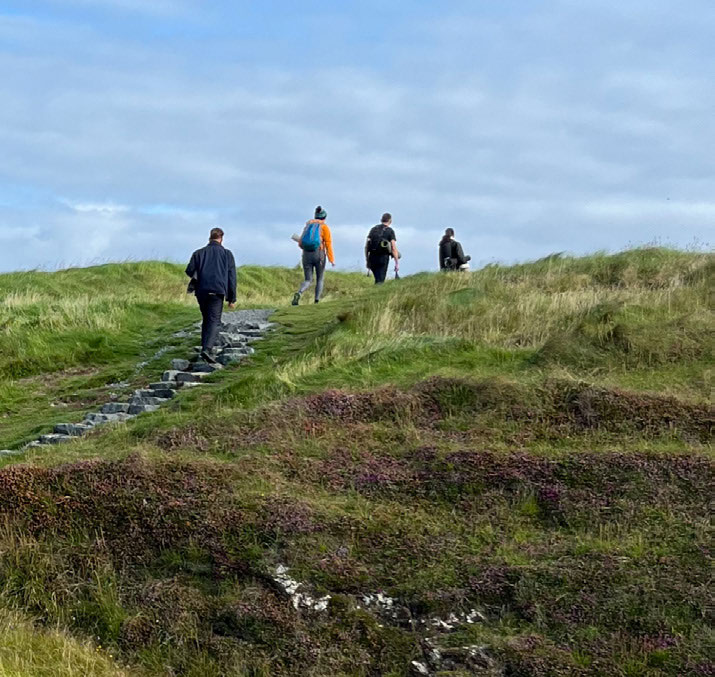 Our Hebrides Cruises’ adventure was punctuated by remarkable wildlife encounters. Dolphins, seals and various sea birds graced our presence regularly, while the sight of a surfacing minke whale left us in awe. On one occasion, over a dozen dolphins were swimming alongside Emma Jane, ducking and diving into the sea. Otters and majestic sea eagles, their wings gracefully slicing through the sky, provided the grand finale to this wildlife symphony. There was palpable excitement among us as a pair of eagles perched on a tree during our approach to Staffa. On the beach of Gunna, friendly seals swam so close that it felt as though they were eager participants in our yoga sessions. Surrounded by the best of Scotland’s west coast wildlife, including dolphins, minke whales, sea eagles, and otters, our adventure was bathed in love and healing.
