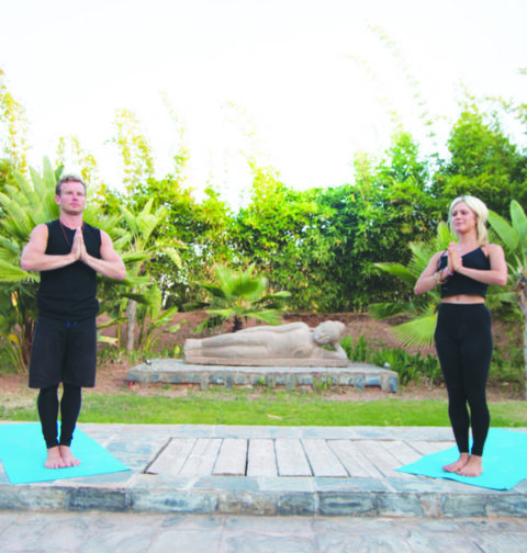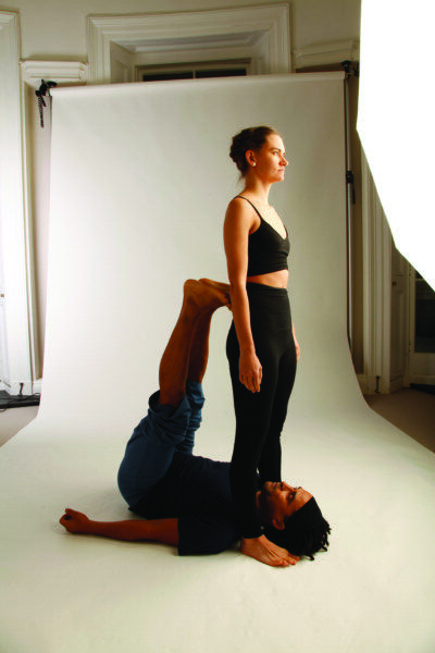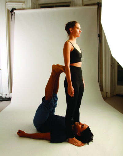 1 – BASE: Hold onto the flyer’s ankles with fingers on the outside and thumb inside. Bring legs to 90-degrees placing toes as close to being in-between shoulder blades. 1 – FLYER: Come to standing over the base’s head facing away from their body. Start to lean back and you should.