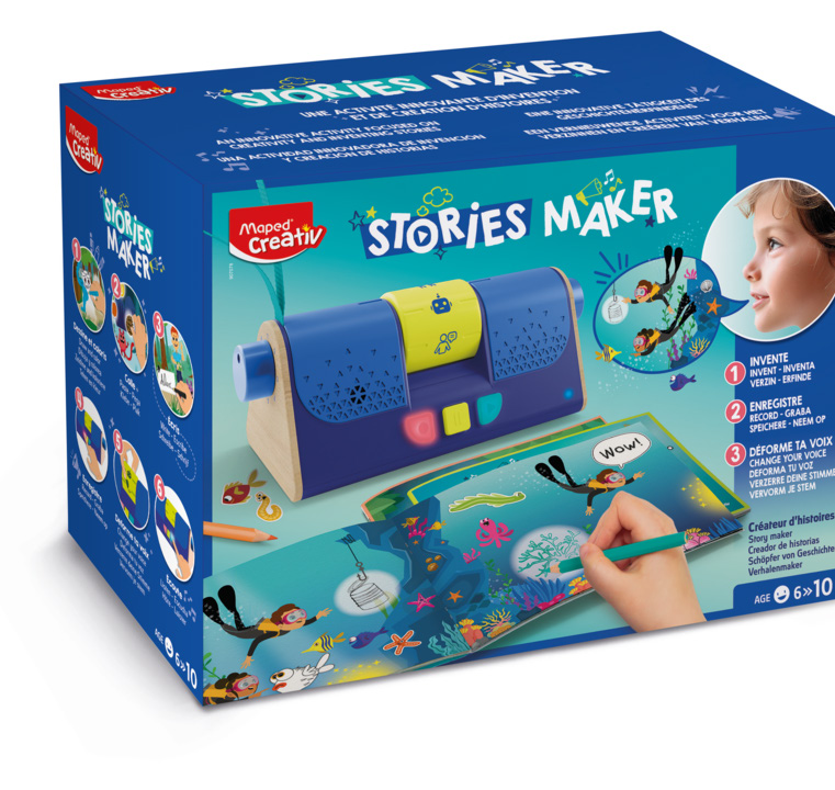 Fuel your child’s imagination with the Maped Stories Maker, the ultimate gift for budding storytellers. This engaging kit empowers kids aged 6+ to create, record, and share their own tales. Featuring three storybooks to customise, it includes stickers, colouring tools, and plenty of space to let creativity flow. The highlight is the exclusive voice recorder/ changer, offering 80 minutes of recording time across eight tracks. With seven fun voice modifiers, kids can add quirky characters to their stories, making every tale unique and entertaining. Designed with little ones in mind, the Stories Maker provides hours of screen-free fun, enhancing their love for storytelling.