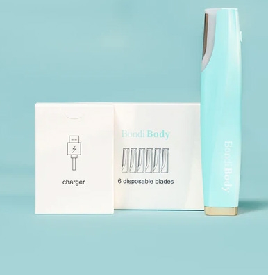 This is a 2-in-1 skincare tool that combines dermaplaning with LED light therapy and sonic vibrations for glowing skin. Equipped with Japanese stainless steel razor blades, it effectively removes peach fuzz and dead skin cells while enhancing skin tone and texture. This compact device not only exfoliates but also helps reduce inflammation, combats acne-causing bacteria, and boosts product absorption by improving circulation. The built-in LED light ensures precision, and the sonic vibrations enhance the overall results. With six disposable razors for hygienic use, this tool offers a professional-level exfoliation experience at home. Perfect for achieving smoother, brighter skin, the Bondi Body Dermaplane Device is an essential addition to any skincare routine.