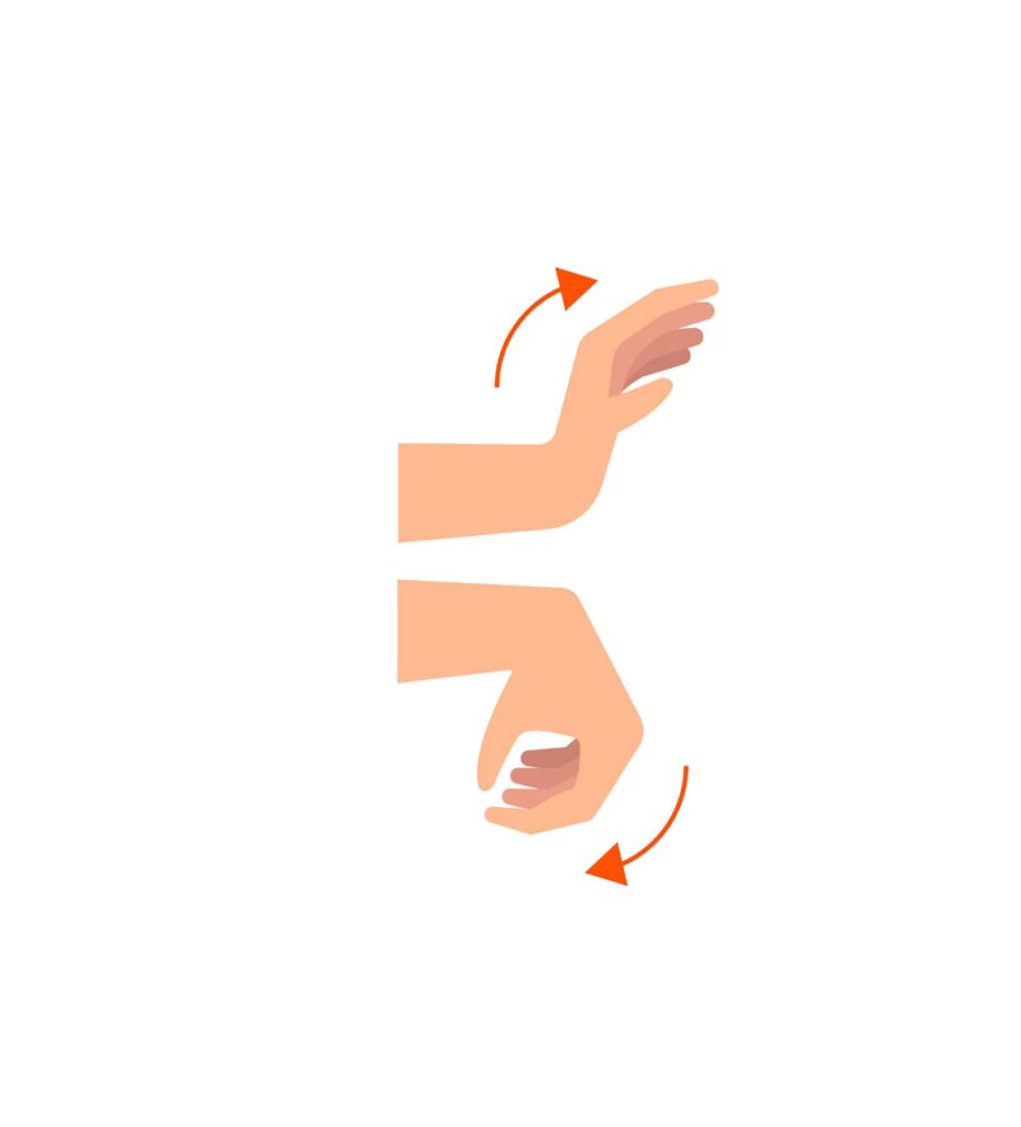 For wrists, try gentle rotations in small circles – one way for a few rotations, then reverse. You can also try a supported stretch – use one hand to gently bend back the palm of your other hand until you feel the stretch in your wrist. Repeat on both sides.