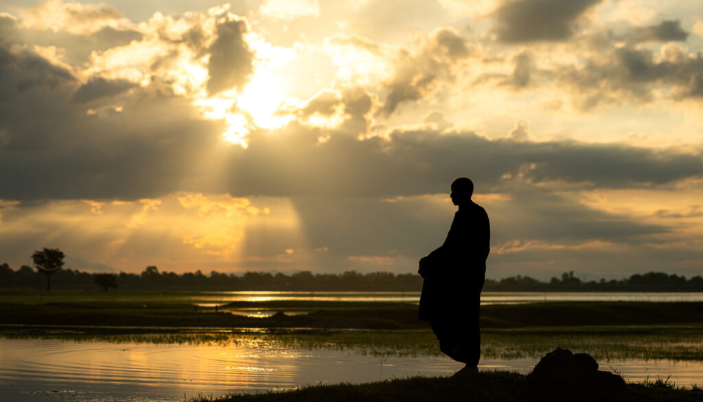 Suddenly, a figure materialised at the mouth of the cave—a figure clad in deep red and gold robes, his presence both serene and imposing. The man’s eyes were wise and clear, his face weathered with age but radiant with compassion.